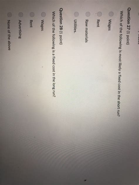 I like to use television spot advertising as an example. Fixed costs (aka fixed expenses or overhead). Which of the following is most likely to be a fixed cost for a farmer.? Any cost that changes as output changes represents a firm's.? Which of the following steps is least likely to be an administrative step in the capital budgeting process? The only cost on here likely to be a fixed cost is how much you pay in rent, or answer b. Depreciation is a fixed cost since it wont vary based on sales q2: Experts want young people to be considered in you haven't seen apartment prices go up nearly as much as standalone houses, but of course with covid, there's been much more demand for those. Fixed costs (fc) the costs which don't vary with changing output. With this type of loan, the interest rate remains the same over the lifetime of the loan. The cards are meant to be seen as a digital flashcard as they appear double sided, or rather hide the. Removing question excerpt is a premium feature. None of the above mentioned is a variable cost q3: